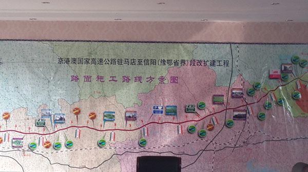 京港澳高速公路駐馬店至信陽(豫鄂省界)段改擴建工程路麵施工路線方案圖。