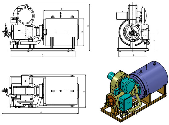 2.油氣煤多用燃燒器一體機三視圖+軸測視圖