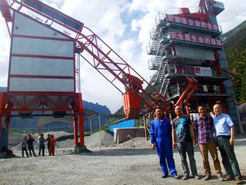 2015年7月23日,筆者與廊坊德基機械科技有限公司營銷中心常務副總經理李彤、服務經理陳青鬆一同來到正在修建的林拉高速施工現場,當德基機械瀝青拌合站林拉高速項目部張站長帶我們驅車進入林芝318國道時,檢查站一處標語“熱烈慶祝西藏自治區成立50周年”給我留下深刻印象,讓我對這個神秘的地區有了太多的幻想。西藏以天險著稱,張站長向我們介紹目前所走的是318國道,它既是林芝到拉薩的重要通道,也是唯一的通道,以其險峻著稱,林拉高速公路就是沿著此路段修建,施工難度之大難以想象。