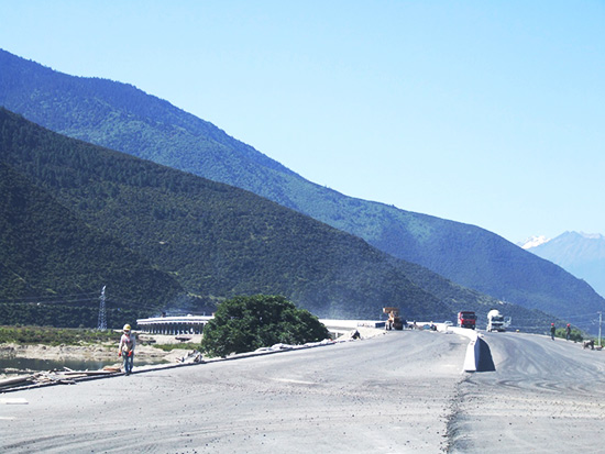 宋經理向我們介紹了林芝機場的工程情況,該工程是西藏林芝至米林機場的專用公路,於2014年7月開工建設,由北向南,起於八一鎮,終點是林芝米林機場,是西藏自治區公路網規劃“一環”的重要組成部分,也是重要的邊防公路。主要功能是地區行政中心八一鎮至朗縣、米林機場的重要通道,林芝地區聯係和溝通山南地區的對外重要出入口。西藏林芝至米林機場專用公路全長45.229公裏,共分兩個標段。A段從八一鎮二橋西橋頭至米林農場,Bduancongmilinnongchangzhimilinjichang,fenbieyouzhongjiaodiyigonglugongchengjuyouxiangongsihezhongjiaodiergonglugongchengyouxiangongsichengjian。xiangmucaiyongshuangxiangsichedaoyijigonglubiaozhunjianshe,shejixingchesudu80公裏/小時。其中橋梁14座,中特大橋梁3座。目前主體工程已經結束,正在進行麵層施工,該項工程將於2015年8月30日竣工通車。