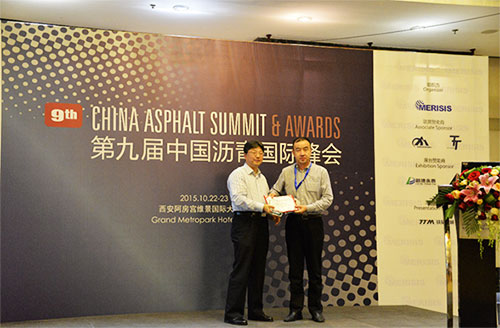 第九屆中國瀝青國際峰會已於2015年10月22日至10月23日在古都西安圓滿召開。經大會組委會和評審團12位中外專家評審,廊坊德基機械科技有限公司榮獲大會頒發的“2015年度傑出瀝青路麵設備生產商”獎。