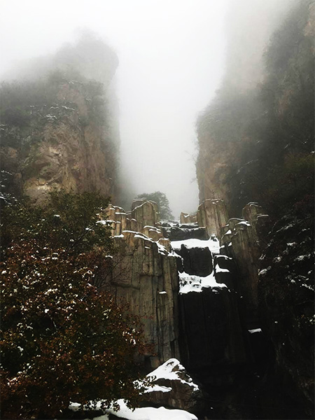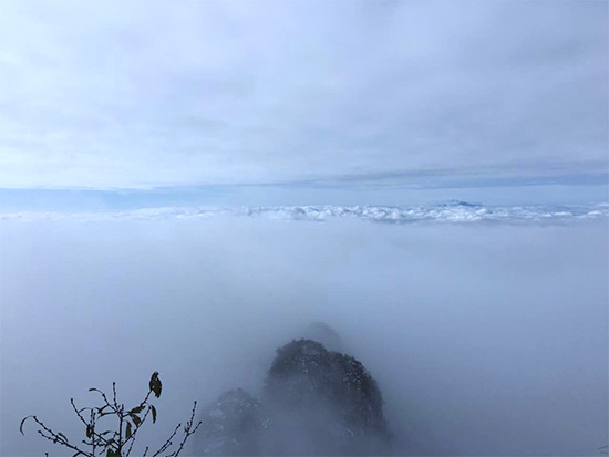 雪xue後hou的de景jing色se別bie有you一yi番fan風feng味wei,也ye更geng增zeng加jia了le登deng頂ding的de難nan度du。在zai經jing曆li了le一yi個ge奇qi幻huan的de溶rong洞dong和he一yi段duan陡dou峭qiao的de天tian梯ti之zhi後hou,大da家jia都dou登deng到dao了le峰feng頂ding。漫man山shan的de大da霧wu中zhong,上shang天tian給gei了le所suo有you登deng頂ding人ren員yuan一yi個ge驚jing喜xi!