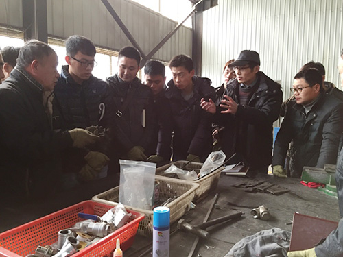 張春錚副總工程師對新型CBS四合一煤粉燃燒器、熱交換器、意大利熱油爐等新的產品進行了現場講解和實操練習。親自動手、實際操作,讓工程師對產品的性能和使用有了更加深入的領悟。