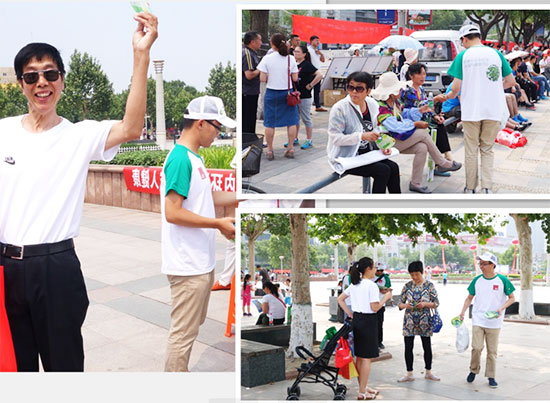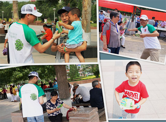 在六·五世界環境日當天,德基機械誌願者們穿著統一服裝,來到人流密集的公園、商場、街頭,發放印有世界環境日宣傳材料的小禮品,讓更多的市民了解世界環境日,了解環保知識,了解環保對我們自身、對整個人類的重要性,同時也表明了德基機械在保護環境方麵的立場。