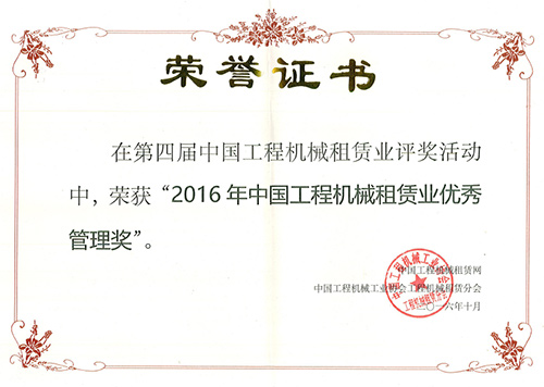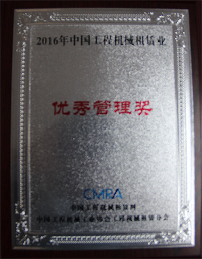 德基機械榮獲“2016年中國工程機械租賃業優秀管理獎”