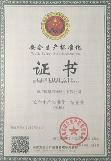★11月16日,德基機械通過安全生產二級標準化評審。