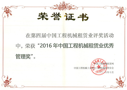 ★德基機械榮獲“2016年中國工程機械租賃業優秀管理獎”。