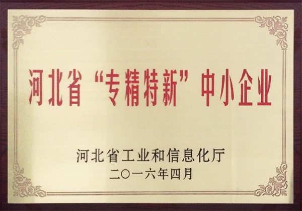 經廊坊市推薦、專家評審、現場考察,德基機械被河北省工業和信息化廳認定為河北省首批“專精特新”中小企業。於2016年12月14-15日在石家莊召開了河北省“專精特新”中小企業服務對接活動。