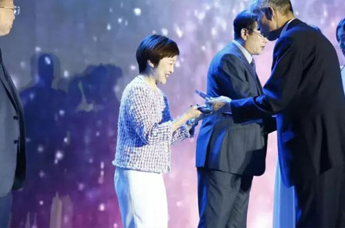 中國工程機械工業協會會長祁俊為德基機械總經理蔡群力女士頒獎