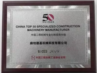 此次被授予“中國工程機械專業化製造商50強”稱號,再次證實德基機械的強大實力。