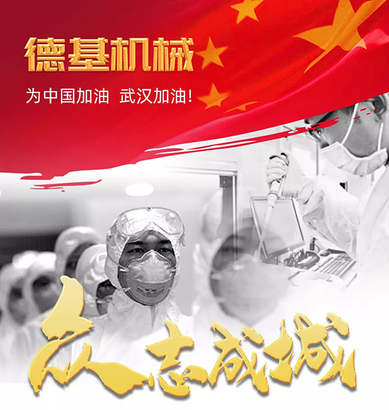 隔絕病毒不隔絕愛,德基機械時刻牽掛著每位客戶朋友和合作夥伴。疫情期間請大家注意飲食,勤洗手、多吃蔬菜、盡量不出入人員密集的場所;在家中適量運動,提高自身免疫力。相信在我們共同努力下,必定能夠打贏這場“戰疫”,我們一起加油!