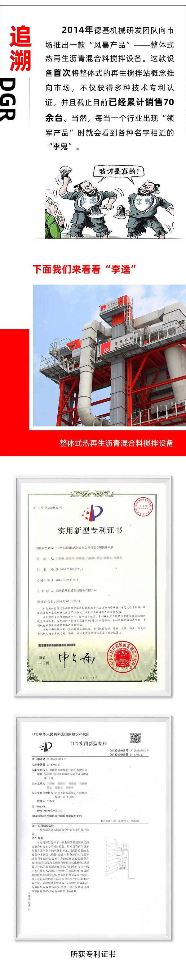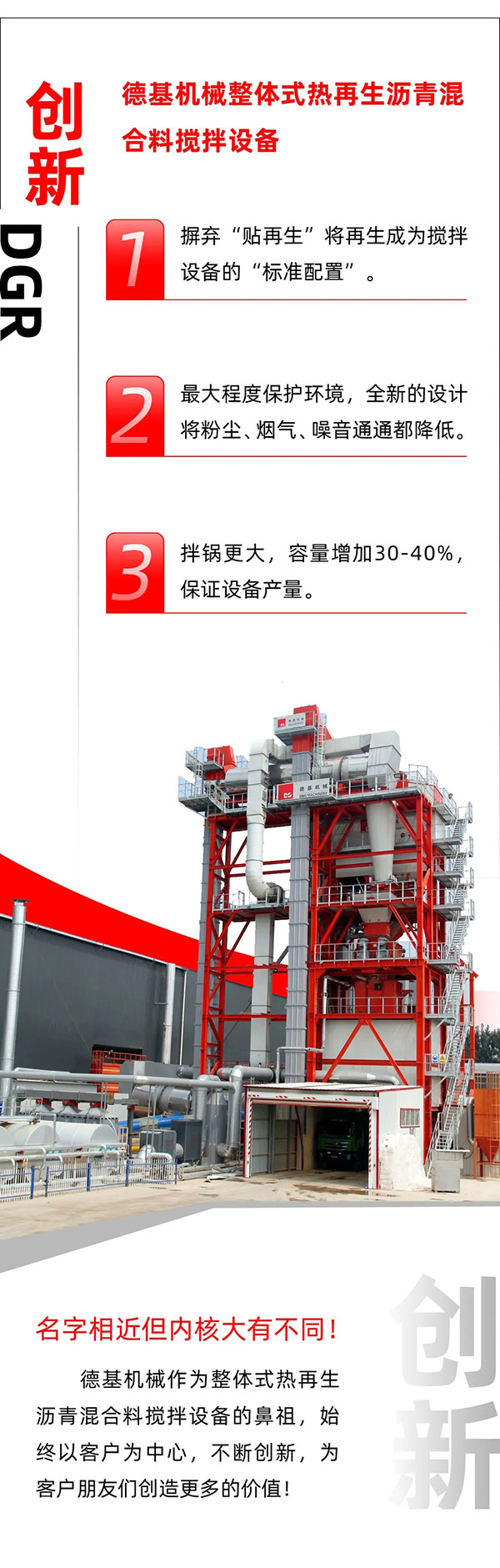 選正品、選鼻祖就選德基機械整體式熱再生瀝青混合料攪拌設備!望客戶朋友們擦亮雙眼,真環保、真節能、真性價比的德基機械設備值得選購!
