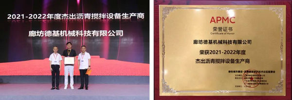 在本屆論壇上,德基機械憑借其在瀝青攪拌設備領域的傑出表現,榮獲了2021-2022年度傑出瀝青攪拌設備生產商。