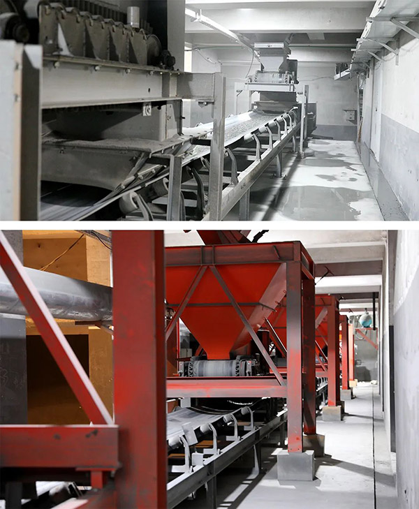 為基地配套了DGR4000型和DGR2000型兩套“整體式”瀝li青qing混hun合he料liao生sheng產chan設she備bei的de同tong時shi,德de基ji機ji械xie還hai創chuang新xin性xing地di為wei每mei條tiao生sheng產chan線xian分fen別bie定ding製zhi開kai發fa了le全quan自zi動dong砂sha石shi料liao儲chu供gong係xi統tong。正zheng是shi這zhe個ge係xi統tong,在zai非fei常chang有you限xian的de空kong間jian內nei充chong分fen滿man足zu石shi料liao大da容rong量liang儲chu存cun的de需xu要yao。砂sha石shi料liao由you全quan自zi動dong砂sha石shi料liao儲chu供gong係xi統tong,通tong過guo多duo組zu輸shu送song皮pi帶dai機ji與yu每mei一yi台tai取qu料liao皮pi帶dai機ji的de出chu料liao口kou對dui接jie,將jiang不bu同tong料liao倉cang提ti取qu的de砂sha石shi料liao收shou集ji,並bing集ji中zhong輸shu送song至zhi混hun合he料liao生sheng產chan設she備bei。