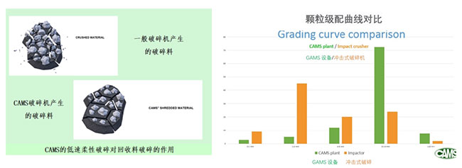 3、采用低速柔性破碎形式,轉速低至20rpm,增強破碎齒棍對物料的“揉搓”作用,進一步降低對回收料的衝擊作用,從而更接近柔性破碎概念,並且更少的產生細碎物料。