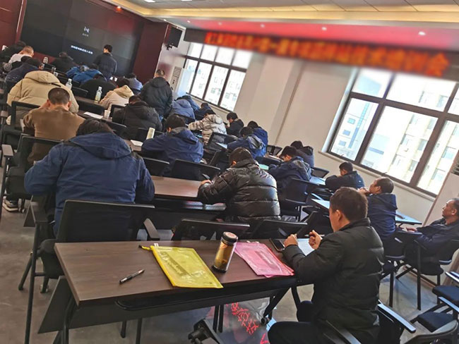 客戶培訓是德基機械服務的一項重要內容,自1999年(nian)德(de)基(ji)機(ji)械(xie)在(zai)北(bei)京(jing)成(cheng)立(li)以(yi)來(lai)從(cong)未(wei)間(jian)斷(duan)。隨(sui)著(zhe)市(shi)場(chang)發(fa)展(zhan)日(ri)新(xin)月(yue)異(yi),環(huan)保(bao)日(ri)趨(qu)嚴(yan)格(ge),德(de)基(ji)機(ji)械(xie)的(de)技(ji)術(shu)不(bu)斷(duan)突(tu)破(po)和(he)創(chuang)新(xin),產(chan)品(pin)持(chi)續(xu)優(you)化(hua)和(he)升(sheng)級(ji),客(ke)戶(hu)培(pei)訓(xun)也(ye)隨(sui)之(zhi)不(bu)斷(duan)在(zai)完(wan)善(shan)和(he)提(ti)升(sheng)。客(ke)戶(hu)技(ji)術(shu)培(pei)訓(xun)通(tong)過(guo)對(dui)設(she)備(bei)的(de)性(xing)能(neng)特(te)點(dian)、工作原理、安裝、調試、操作與維護保養、電控係統、生(sheng)產(chan)工(gong)藝(yi)流(liu)程(cheng)和(he)路(lu)麵(mian)材(cai)料(liao)與(yu)試(shi)驗(yan)等(deng)相(xiang)關(guan)知(zhi)識(shi)進(jin)行(xing)梳(shu)理(li),可(ke)以(yi)全(quan)麵(mian)提(ti)高(gao)客(ke)戶(hu)使(shi)用(yong)德(de)基(ji)瀝(li)青(qing)混(hun)合(he)料(liao)攪(jiao)拌(ban)設(she)備(bei)的(de)能(neng)力(li)和(he)水(shui)平(ping),從(cong)而(er)幫(bang)助(zhu)用(yong)戶(hu)在(zai)激(ji)烈(lie)的(de)市(shi)場(chang)競(jing)爭(zheng)中(zhong)保(bao)持(chi)領(ling)先(xian)。