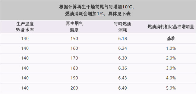 假設尾氣溫度較高,按200℃計算,每生產一噸再生料多消耗0.31kg燃油,按照重油每噸4000元計算,其費用約1.2元。