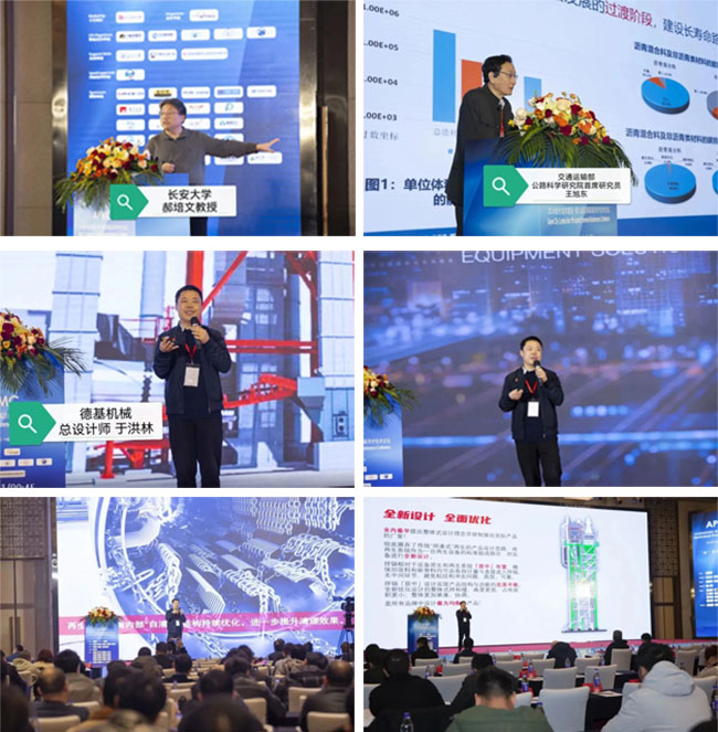 會(hui)議(yi)現(xian)場(chang)人(ren)潮(chao)湧(yong)動(dong),氣(qi)氛(fen)熱(re)烈(lie)。在(zai)演(yan)講(jiang)嘉(jia)賓(bin)中(zhong),除(chu)了(le)長(chang)安(an)大(da)學(xue)的(de)郝(hao)培(pei)文(wen)教(jiao)授(shou),交(jiao)通(tong)運(yun)輸(shu)部(bu)公(gong)路(lu)科(ke)學(xue)研(yan)究(jiu)院(yuan)王(wang)旭(xu)東(dong)首(shou)席(xi)研(yan)究(jiu)員(yuan)等(deng)耳(er)熟(shu)能(neng)詳(xiang)的(de)名(ming)字(zi),德(de)基(ji)機(ji)械(xie)總(zong)設(she)計(ji)師(shi)於(yu)洪(hong)林(lin)先(xian)生(sheng)也(ye)在(zai)會(hui)上(shang)作(zuo)了(le)《高質量廠拌熱再生設備解決方案》的主題報告,主要從DGX係列瀝青混合料攪拌設備,整體式再生設備及再生配套,包括重新設計的拌鍋、德基首創專利技術的“自清理”烘(hong)幹(gan)滾(gun)筒(tong),全(quan)方(fang)位(wei)定(ding)製(zhi)化(hua)環(huan)保(bao)投(tou)入(ru)及(ji)瀝(li)拌(ban)相(xiang)關(guan)係(xi)列(lie)配(pei)套(tao)產(chan)品(pin)等(deng)方(fang)麵(mian)進(jin)行(xing)了(le)介(jie)紹(shao),展(zhan)現(xian)了(le)德(de)基(ji)機(ji)械(xie)在(zai)綠(lv)色(se)低(di)碳(tan)瀝(li)青(qing)路(lu)麵(mian)養(yang)護(hu)領(ling)域(yu)的(de)實(shi)踐(jian)與(yu)應(ying)用(yong)。