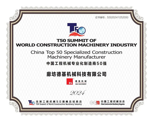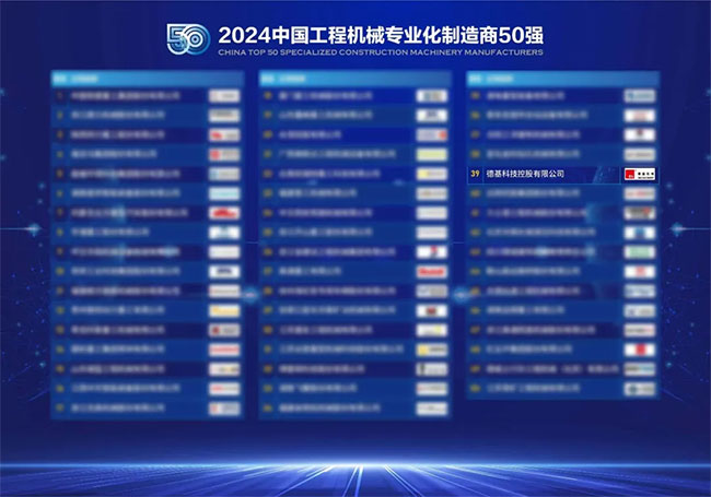 作為全球工程機械行業內最具影響力和矚目的盛會,T50qiangfenghuizainulituidongzhongguogongchengjixiexingyefazhanshangzuochulegongxian,tongshijiexiaoleduoxiangxingyepaixingbangjibiaozhanglexingyeneideyouxiuqiyehegeren。dejijixiezaicironghuojiangxiang,rongdeng“中國工程機械專業化製造商50強”榜單,位列第39名和榮獲“全球工程機械PLUS製造商50強”。同時,德基機械總裁蔡群力憑借傑出的行業影響力和領導力,榮登“中國工程機械產業影響力50人”。