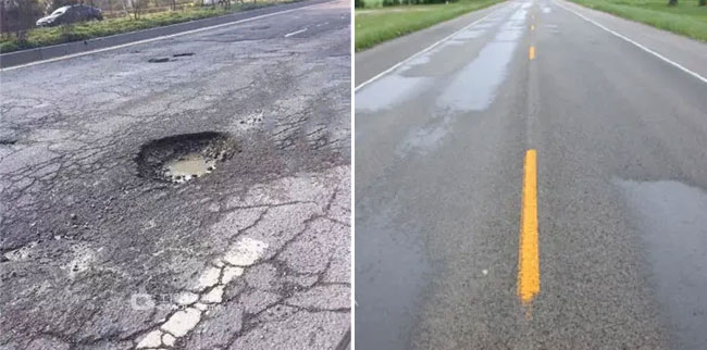 水破壞:水破壞是瀝青路麵常見的早期病害之一,主要表現為網裂、坑洞等。如果瀝青拌合站拌和計量精度差生產的混合料空隙率過大、導致施工壓實度不足瀝青與礦料的粘結性能差,會導致水分容易滲入路麵結構層內部,造成水破壞