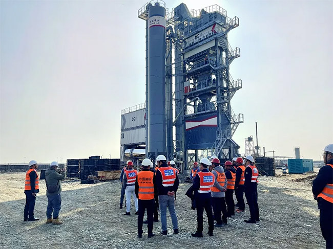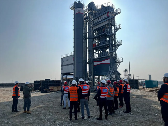 近日,中國路橋(CRBC)jierjisisitanfengongsilingdaozhangjunwuyixinglilinjierjisisitanmanasiguojijichangkuojianxiangmushigongxianchang,shidikaochagongchengjinzhanqingkuang,bingzhongdianshichaleguanjianshigongshebeideyunxingzhuangtai。zuoweibenxiangmudezhongyaohexinshebeizhiyi,dejijixieDGX4000D型瀝青攪拌站在現場順利完成試運行,表現穩定,各項技術指標均達到國際標準,獲得了中國路橋領導的高度認可。