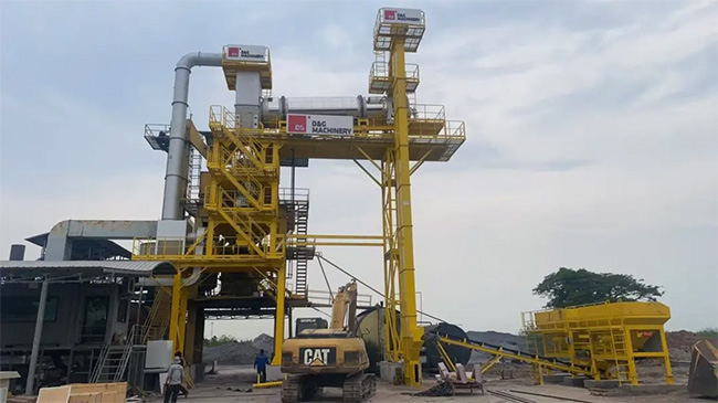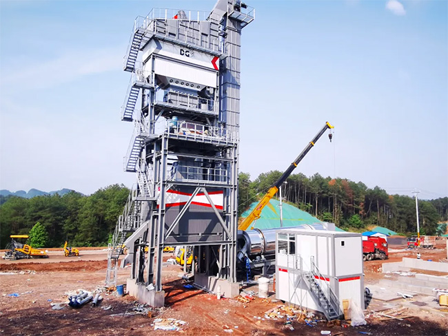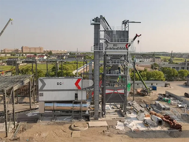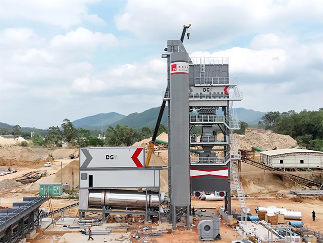 一台DGXR5000D整體式再生瀝青攪拌站從4月2日開始安裝,預計5月10日開始投產出料。