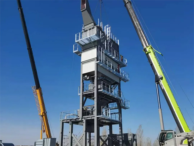 一台DG2000瀝青攪拌站在熱火朝天的安裝中,配套的部件也在陸續發貨運至現場,確保設備順利安裝並投產。