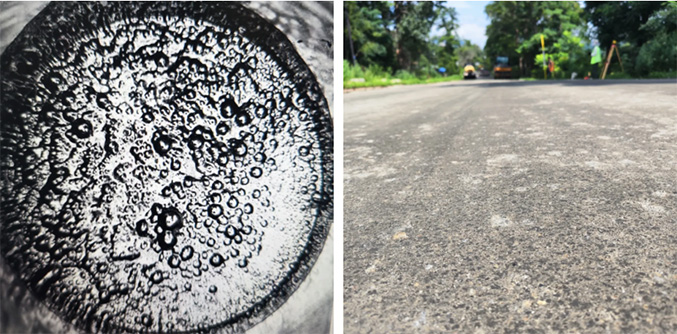 泡沫瀝青冷再生技術的核心在於瀝青的物理發泡過程。當常溫水與150℃以上高溫瀝青接觸時,瞬間汽化形成數以萬計的微小氣泡,使瀝青體積膨脹10倍以上,形成泡沫瀝青。這種特殊形態的瀝青能均勻包裹回收(RAP)的粗細集料,形成類似砂漿的膠結層,填補粗集料間隙,構建出兼具剛性與柔性的複合結構層。