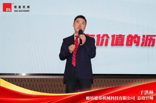 德基機械總設計師於洪林向參會嘉賓介紹了《技術賦能瀝拌生產,創新鑄就行業價值》的內容,深入解析如何通過技術創新破解行業痛點,實現降本增效、品質提升與環保達標,為瀝青拌和行業高質量發展注入強勁動力。