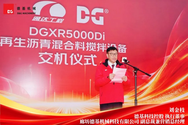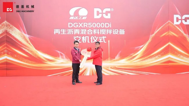 在全場嘉賓的矚目與掌聲中,德基機械正式向寶雞通達工程集團交付了一套具有裏程碑意義的設備——DGXR5000Di再生瀝青混合料攪拌設備及其配套的RCS120Gi再生料破碎篩分設備,該設備以“再生一體化、高效智能、超低排放”為核心優勢,標誌著雙方合作邁入新階段。