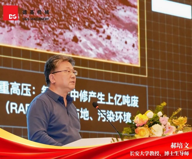 長安大學教授、博士生導師郝培文作了《瀝青路麵熱再生技術》的主題報告,係統闡述了廠拌熱再生技術在公路大中修工程中的應用價值,指出其在節約原材料、降低碳排放方麵的顯著成效,並展望了未來向更高摻量、更低能耗、更智能方向發展的趨勢。