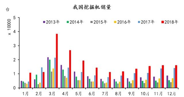 2018年12月,納入統計的25家主機製造企業,合計銷售各類挖掘機16000餘台,同比增長14.4%,連續8個月創曆史同期新高,連續16個月銷量破萬台!。2018年全年,挖掘機累計銷量超過20.3萬台,相比去年同期約14萬台,大幅增長45.0%,全年銷量創下曆史新高。