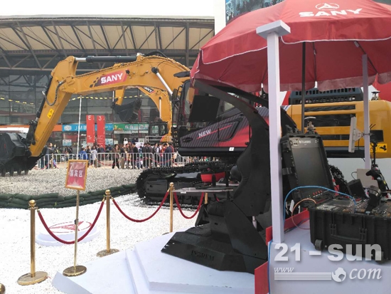 寶馬展現場,三一展示可遙控操作的挖掘機。 澎湃新聞 海陽 圖