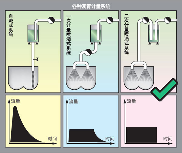| 瀝青計量進鍋方式 | 動態二次計量、高壓霧化噴灑 | |||||||